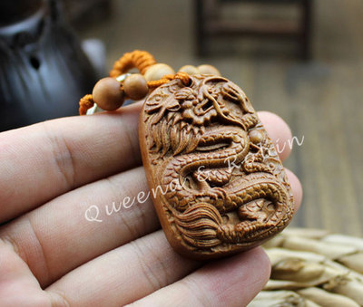 Wood carving Chinese totem Dragon statue sculpture amulet netsuke key chain W23
