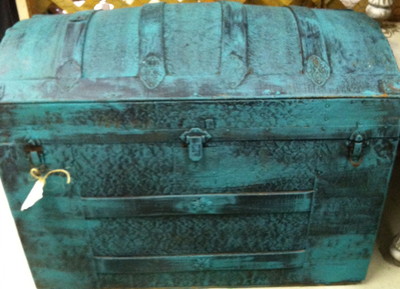 Title (ebay affiliate link): Victorian Shabby Vintage Metal/Wood Camelback Ornate Trunk Dark Aqua LOVE THIS!!