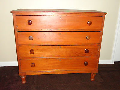 ANTIQUE 4 DRAWER PINE BUREAU DRESSER