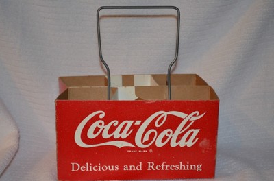 Title (ebay affiliate link): Vintage 50's? Coke Cola Bottle Carrier Cardboard Six Pack Soda with metal holder