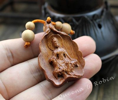 Title (ebay affiliate link): Wood Carved Chinese Buddha Guanyin Bodhisattva Amulet Statue Bag Key Chain W96