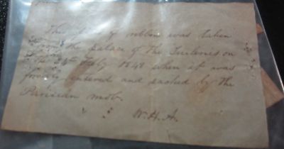 Piece of Ribbon from Tuileries Paris Taken During Mob Attack 1848