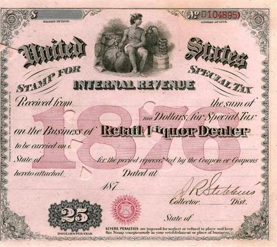 Antique 1876 MOONSHINE Whiskey STILL Liquor License Bar Brewer Distillery Tax