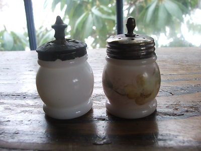 Title (ebay affiliate link): PR , BOSTON SANDWITH GLASS SALTS IN MILK GLASS ONE IS PAINTED WITH TOPS