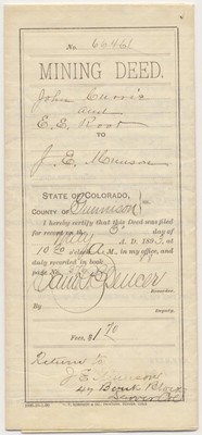 Title (ebay affiliate link): 1893 MINING DEED Orillia Lode QUARTZ CREEK District GUNNISON County COLORADO