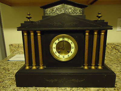 Title (ebay affiliate link): RARE LATE 1800'S ANTIQUE CAST IRON MANTLE CLOCK, 6 COLUMN, NO RESERVE!
