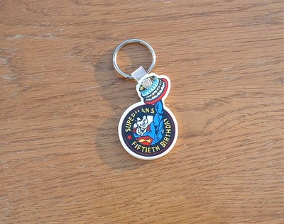 Title (ebay affiliate link): Vintage 1988 Superman 50th Birthday Commemorative Keychain Superman w/Cake!