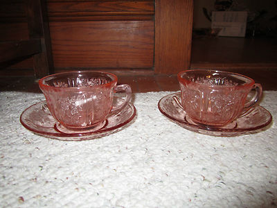 2 Cup's & 2 Saucers Pink Federal Glass Sharon!!!