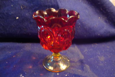 GLASS 6.5 INCH RUBY RED TO YELLOW CANDY COMPOTE