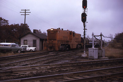 Orig Slides (3) EJ&E Elgin Joliet & Eastern DT66-2000 #916+Train @ Griffith 1972