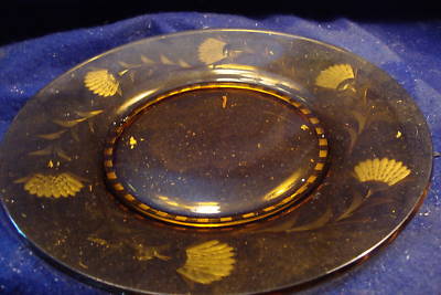 GRANDMAS GLASS 1920'S 8'' CUT ROSE AMBER GLASS PLATE