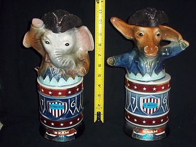 Title (ebay affiliate link): SET OF 2 1976 JIM BEAM DEMOCRAT DONKEY & REPUBLICAN ELEPHANT PORCELAIN DECANTERS