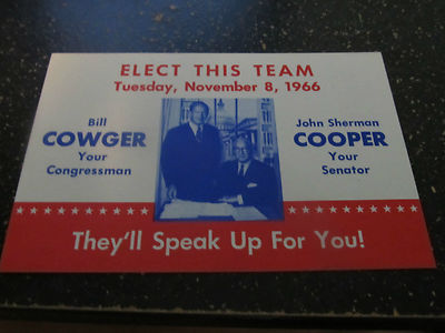 Title (ebay affiliate link): 1966 KENTUCKYCAMPAIGN COWGER COOPER ELECTION CAMPAIGN CARD