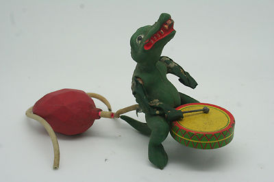 Vintage Rubber Alligator w/ Tin Drum Toy