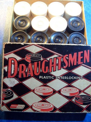 Title (ebay affiliate link): A vintage set of Draughts Pieces by Marchant Games for your collection.