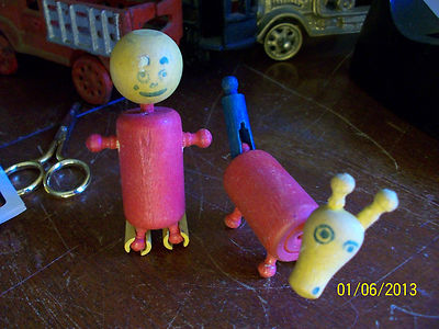 Vintage Lot of wooden toy people building blocks