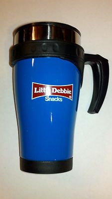 Title (ebay affiliate link): Little Debbie Blue Metal Travel Mug with lid-Little Debbie Logo