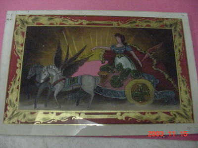 Title (ebay affiliate link): Clock Glass ANTIQUE Lady with 2 Pegasus Horses in cart Measures 7 1/8 x 4 11/16