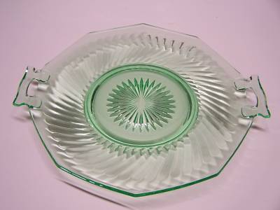 Green twisted optic sandwich tray, Imperial Glass Co.