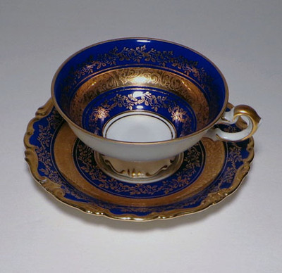Title (ebay affiliate link): Antique Bavaria ALKA Cup & Saucer Cobalt Blue and Gold SYLVIA Pattern MINT!