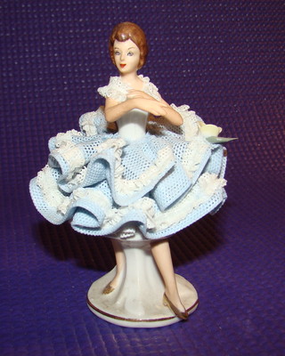 Title (ebay affiliate link): Vintage German Porcelain Dresden Blue Ballerina Figurine ~ Porcelain Lace & Rose