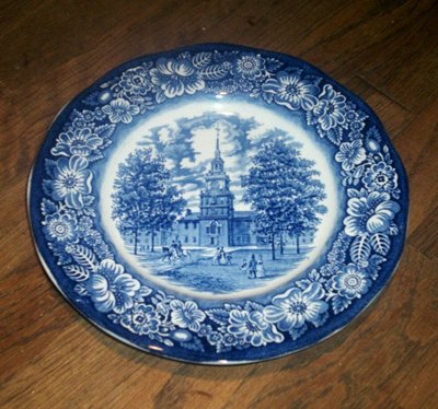 Title (ebay affiliate link): Liberty Blue Ironstone Plate Independence Hall Historical Blue Transfer Vintage
