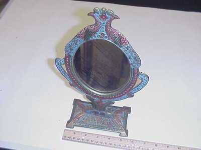 Victorian Vanity Mirror Solid Brass Hand Painted Excellent Condition OLD