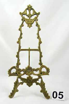 Vintage Solid Brass Victorian Easel Plate Picture Display 10 1/2" h x 4" w 05