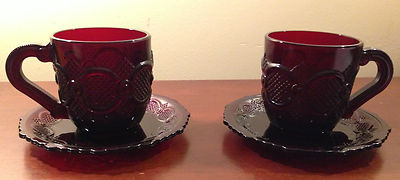 Title (ebay affiliate link): Avon (set of 2) tea cup and saucer cape cod Ruby glassware vintage Excellent