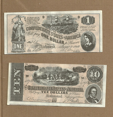 1962 Topps Civil War News $1.00 & $10.00 currency, exc.