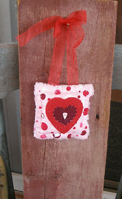 Title (ebay affiliate link): *~Primitive VaLenTiNe's DaY pillow..wool felt hearts....door hanger...CUTE..~*