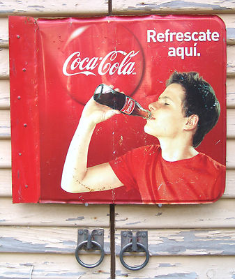 Title (ebay affiliate link): COCA COLA METAL TIN LITHO DOUBLE-SIDED ADVERTISING SIGN 15 X 18 INCHES