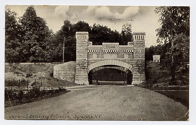 Title (ebay affiliate link): SYRACUSE NEW YORK Oakwood Cemetery Entrance Vintage 1910 Used Postcard
