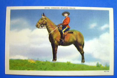 MAGNIFICENT HORSE & ROYAL CANADIEN MOUNTED POLICEMAN LINEN POSTCARD $.99 BID