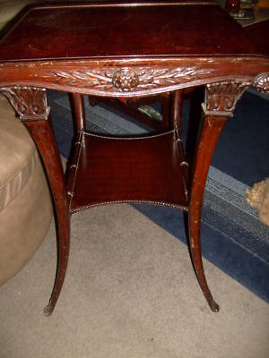 Title (ebay affiliate link): ANTIQUE LEATHER TOP CARVED SIDE TABLE FANCY FEET!!