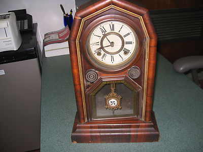 ANTIQUE E.N. WELCH EMPRESS V.P. 1 and 8 DAY - VENEER SHELF CLOCK