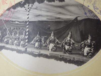 P36 JAPANESE VINTAGE POSTCARD "HAGAKI" STAMP GEISHA GIRL DANCE KIMONO STAGE NR