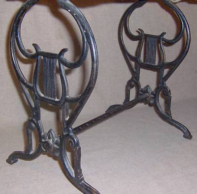 Title (ebay affiliate link): VINTAGE CAST IRON BENCH~STOOL BASE~HARP STYLE~FOUR LEGS