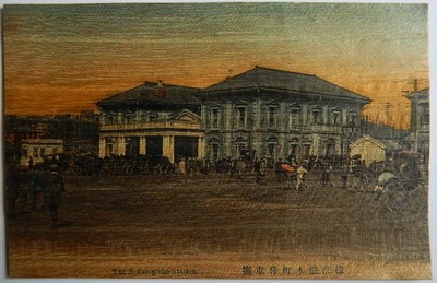 Title (ebay affiliate link): Old colored postcard MADE IN WOOD from The Sakuragicho Station, Japan c. 1910
