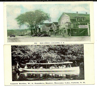 Title (ebay affiliate link): 2 Card New Hampshire Lot, Lancaster Street-Hudson Auto Sign, Enfield Boat!!