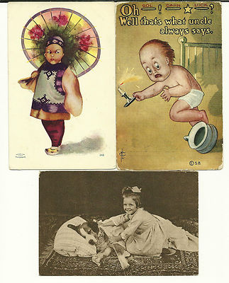Title (ebay affiliate link): 3 Card Lot, Comic Children, Girl with Dog, Boy Trips, Chinese Girl-Umbrella!!