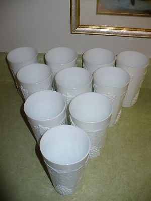 Title (ebay affiliate link): 10 WHITE MILK INDIANA GLASS COLONY HARVEST GRAPE 12-14 OZ GLASSES SHABBY SHEEK