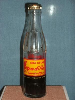 Title (ebay affiliate link): RARE Pep-a-dilla miniature soda pop bottle 3 3/4" tall decal label Foreign