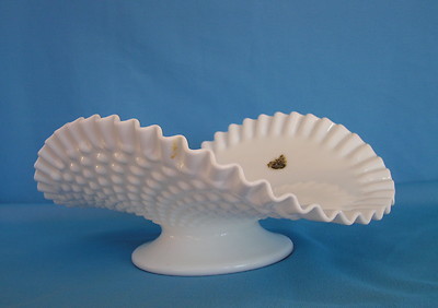 Title (ebay affiliate link): Vintage Milk Glass Fenton Hobnail Pedestal Banana Bowl with Labels