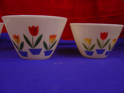 Title (ebay affiliate link): 2 FIRE KING ANTIQUE WHITE MILK GLASS TULIP MIXING/NESTING BOWLS