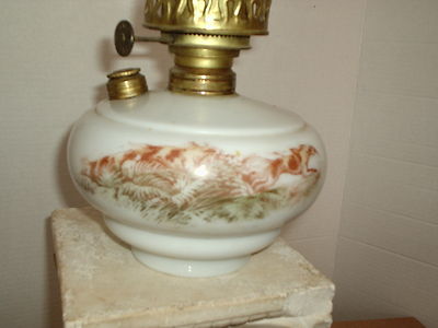 Title (ebay affiliate link): ANTIQUE Milk Glass Kerosene Lamp SPORTING DECAL Horse Dogs Equestrian AWESOME
