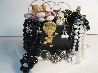 Title (ebay affiliate link): vintage & modern KJL for Avon earrings milk glass necklace BSK leaf brooch
