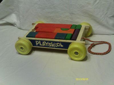 Vintage Pull Playskool Wooden Blocks Toy Wagon