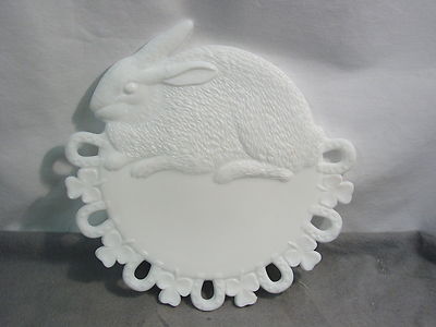 White Milk Glass Bunny Rabbit Horseshoes & Clovers PLATE