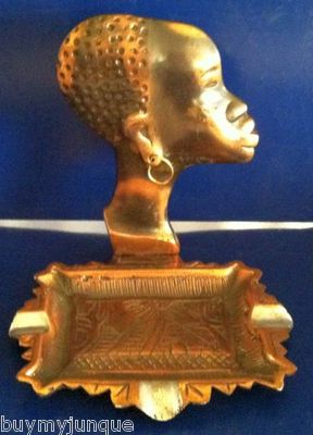 40's 50's 3-D African Zulu Tribal Pyramids Copper Lady Ashtray